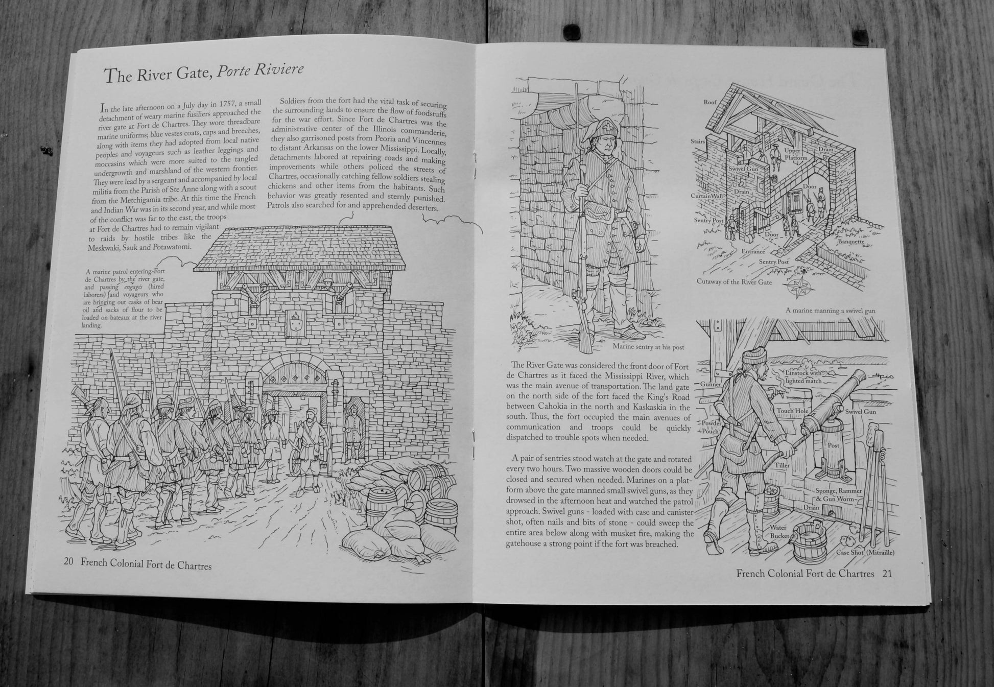 Our new Les Amis 2018 educational project is a line-art publication, French Colonial Fort de Chartres, a Journey in Time, depicting “Forgotten Illinois” pre-statehood years of 1755-1756, in and around Fort de Chartres. A Journey in Time will be a 36-40-page line-art one color publication, created by award-winning artist Tom Willcockson and published by Les Amis du Fort de Chartres. Tom is the artist of the current interactive pamphlet available at the fort and among his many career accomplishments, his art is featured in two other publications, Twelve Moons: A Year with the Sauk and Meskwaki, 1817-1818 and Passage to Chicago: A Journey on the Illinois & Michigan Canal in the Year 1860. Both publications won the Illinois Association of Museums’ Superior Achievement Award. The style of this new publication featuring Fort de Chartres mid eighteenth-century history is unique to other currently published books about Fort de Chartres and will present a great visual perspective for young adults and the general public, filling a void in schools and libraries.